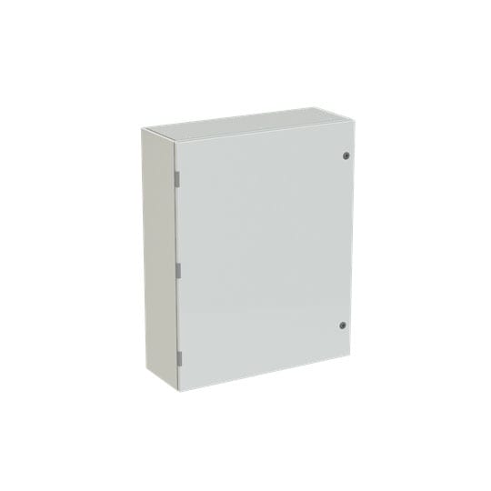 Cassa con porta cieca e piastra di fondo serie SR2, struttura in lamiera d'acciaio spessore 12/10, piastra di fondo in lamiera zincata spessore 20/10. Utilizzata per la realizzazione di quadri di comando e controllo delle più varie macchine industriali: da grossi macchinari a linee automatizzate di produzione o parti di esse, alle tipiche installazioni di quadri bordo macchina, a caldaie, impianti di riscaldamento ed altro ancora. Consente anche la realizzazione di quadri di distribuzione secondaria grazie alla possibilità di installare tutta la gamma di apparecchi e interruttori modulari su guide DIN abbinate ad appositi pannelli frontali modulari preforati e incernierati.