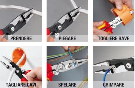Pinza multifunzione In acciaio speciale forgiato e temperato ad olio Manici bicomponenti a forte spessore con paramani - Prendere - Piegare - Togliere Bave - Tagliare Cavi - Spelare - Crimpare