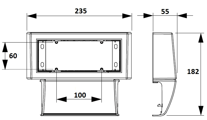 Scatola porta apprecchi per canale battiscopa e canale a cornice, 6-7 moduli