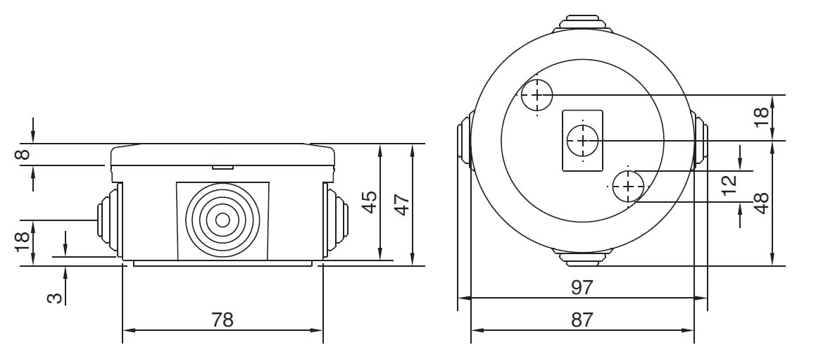 IP44 02 GRI Cassetta di derivazione stagna da parete con passatubi GRIGIO