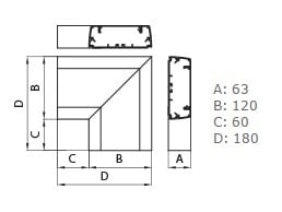 AP-ALU 120x60 AO Angolo piano per canale ALU-B ALLUMINIO OPACO