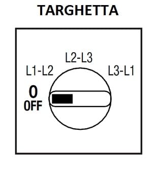 Commutatore voltmetrico tre tensioni concatenate, montaggio retroquadro con viti, mostrina trasparente 52x52mm, manopola nera, IP40