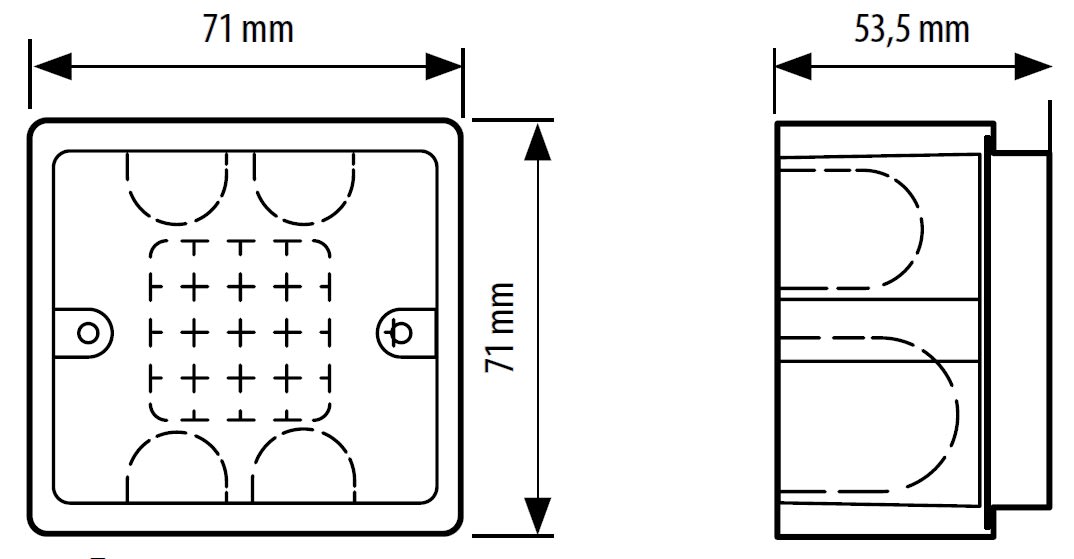 scatola 2 moduli da incasso per pareti e soffitti in muratura, per l’installazione delle serie civili, con viti per fissaggio supporto a corredo - Dimensioni 71 x 71 x 53,5 mm