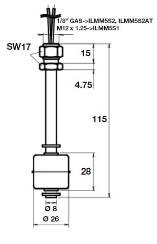 Sensore magnetico di livello, Contenitore cilindrico in acciaio inossidabile AISI 316 I modelli in acciaio inossidabile sono utilizzabili anche in ambienti corrosivi. I sensori di livello miniatura trovano applicazione ideale nell’industria alimentare, chimica, petrolifera. Funzione d’uscita invertibile capovolgendo il galleggiante.