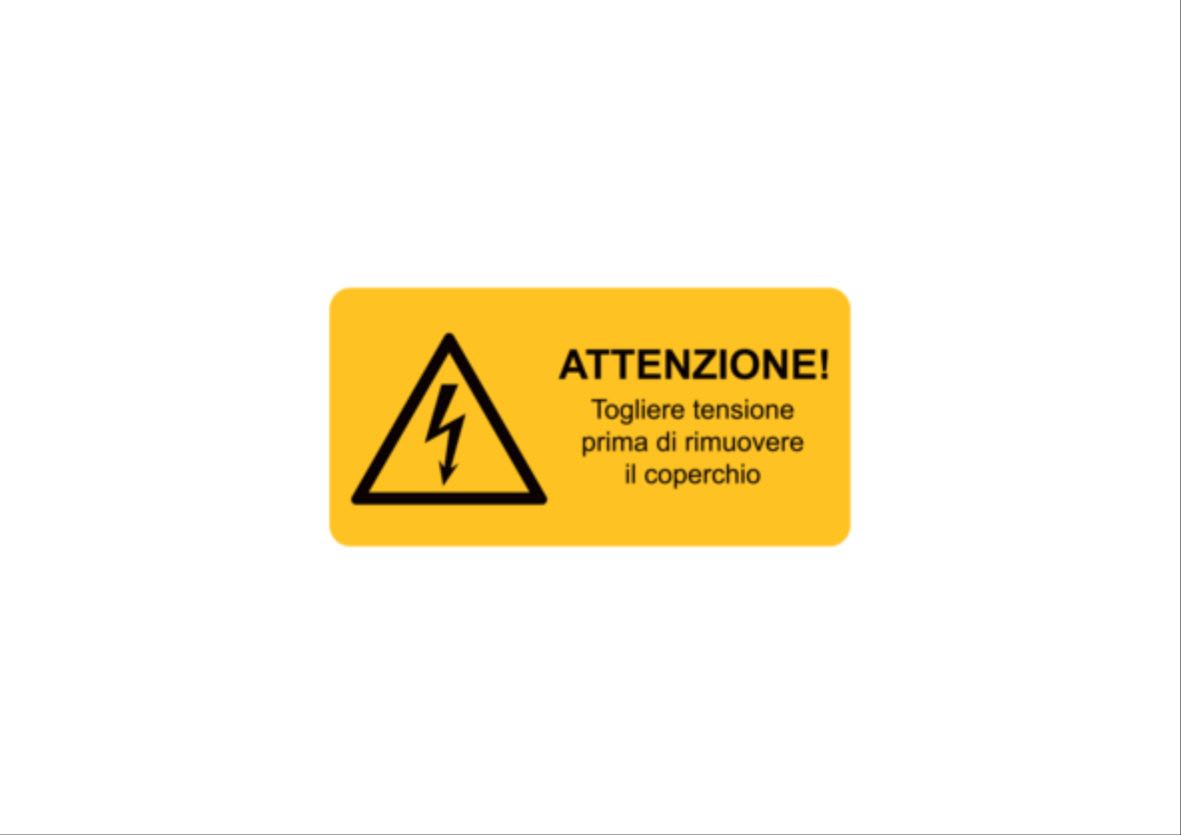 Composte dai simboli di avvertimento (WS) e con possibile integrazione di testo informativo (WST). Disponibili in formati diversi, permettono di segnalare in modo dettagliato ed efficace apparecchiature, macchinari ed impianti. Ilformato con testo e disponibile a richiesta in altre lingue