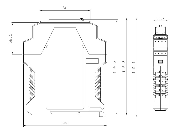 SG-BWS-T4: centralina di sicurezza in contenitore plastico per montaggio su guida DIN/OMEGA dotata di 48 morsetti a vite ai quali è possibile collegare da 1 a 4 coppie di fotocellule delle serie S5-ST, SL5- ST, S300 con uscite di sicurezza statiche PNP (OSSD);