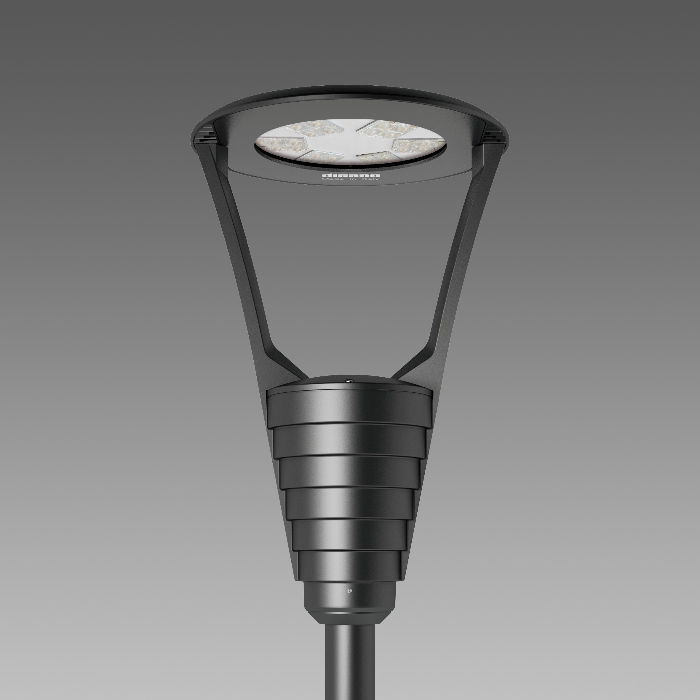 3355 Garda 5 - Rotosimmetrico - Corpo e bracci : in alluminio pressofuso, disegnati con una sezione a bassissima superficie di esposizione al vento. Ottiche: ottiche realizzate in PMMA con alta resistenza alla temperatura e ai raggi UV. Attacco palo: inalluminio pressofuso. Idoneo per pali di diametro da 60 a 76mm. Diffusore: vetro trasparente sp. 4mm temperato resistente agli shock termici e agli urti (UNI-EN 12150-1 : 2001). Verniciatura: iil ciclo di verniciatura standard a liquido, ad immersione, ècomposto da diverse fasi. Una prima fase di pretrattamento superficiale del metallo, poi una verniciatura in cataforesi epossidica resistente alla corrosione e alle nebbie saline, poi una mano finale a liquido bicomponente acrilico, stabilizzato ai raggiUV. Dotazione: cablaggio posto su piastra di cablaggio in nylon 30% f.v. con connettori rapidi per il collegamento della linea e del LED. Dispositivo di controllo della temperatura all’interno dell’apparecchio con rispristino automatico. Con dispositivoelettronico dedicato alla protezione del modulo LED. Valvola anticondensa per il ricircolo dell’aria. Risparmio: la possibilità di scegliere la corrente di pilotaggio dei LED consente di disporre sempre della potenza adeguata ad una specifica condizione progettuale, semplificando anche l’approccio alle future problematiche di manutenzione ad aggiornamento. La scelta di una corrente più bassa aumenterà l’efficienza e quindi migliorerà il risparmio energetico, mentre con una corrente maggiore si otterrà più luce e sarà possibile ridurre il numero degli apparecchi. Normativa: prodotti in conformità alle norme EN60598 - CEI 34 - 21. Hanno grado di protezione secondo le norme EN60529. LED: fattore di potenza: >= 0,9. Mantenimento del flusso luminoso al 80%: 80.000h (L80B10). Superficie di esposizione al vento: 769 cmq. LED 53W 5063lm 700mA 3000K CRI 70. Antracite.