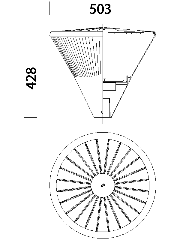 CORPO: In alluminio pressofuso. CAPPELLO: In lastra di alluminio. DIFFUSORE: In policarbonato infrangibile ed autoestinguente V2, stabilizzato ai raggi UV. Liscio e trasparente sia internamente che esternamente. VERNICIATURA: In diverse fasi. La prima adimmersione in cataforesi epossidica nera, resistente alla corrosione e alle nebbie saline. La seconda con fondo per stabilizzazione ai raggi UV e per ultima finitura bugnata con vernice acrilica colore grigio grafite o argento sabbiato. DOTAZIONE: Dispositivo di controllo della temperatura all’interno dell’apparecchio con ripristino automatico. MONTAGGIO: Su palo diam. 76/60 mm o su braccio. NORMATIVA: Prodotti in conformità alle vigenti norme EN60598-1 CEI 34-21, sono protetti con il grado IP65IK08 secondo le EN 60529. In classe di isolamento II.