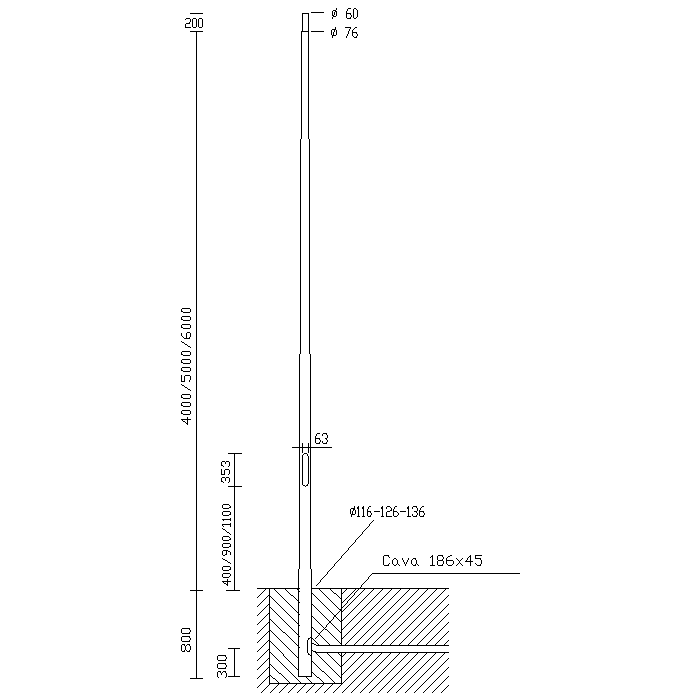 Palo in acciaio colore argento o grafite. Con finestra d'ispezione in alluminio pressofuso completo di 2 portafusibile di protezione, 2 fusibili da 10A morsettiera asportabile a 4 poli. Predisposto con foro per ingresso cavo di alimentazione. Da utilizzare con acc. 513.