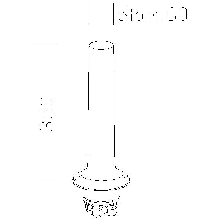 In allumino pressofuso, da usare alla sommità del palo acc. 1420-21, completo di cavo di alimentazione con guaina esterna in PVC e conduttori in doppio isolamento. Scatola di derivazione con morsetto per il collegamento elettrico. Viterie in acciao inox.