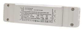 Corpo in policarbonato termoresistente. Interruttore termico con autoripristino. Protezione contro corto circuito: circuito elettronico con ripristino automatico. Fattore di potenza: 0.99. Morsetti a vite. Frequenza di funzionamento: 50-60Hz. Secondario:11.5V. Efficienza: 95%. Temperatura di funzionamento: -17°C / 40°C. Certificati dal TÜV: Radio Disturbi EN 55015; Armoniche EN 61000-3-2 EN 61000-3-3; Sicurezza EN 61347; Immunità EN61547