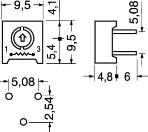 TRIMMER CERMET 1 GIRO SIGILLATO ESECUZIONE ORIZZONTALE. POTENZA:0,5 W A 85°C. TEMP. LAV.:-55°C÷+125°C.TOLLERANZA:±10%. CAC. TARATURA:7/1856. OR. 1G. 5 KOHM.