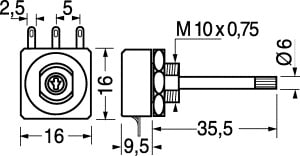 POTENZIOMETRI A STRATO DI CARBONE ACP A VARIAZIONE LINEARE. Senza interruttore. POT. MAX A 40°:0,25W. N° CICLI:>25000. TENS. LIMITE:250V. TEMP. LAVORO:-25°c+70°c. TOLLER.:100-1Mr±20%. >1Mr ±30%. CURVA:lineare. RES. DI CONT.:>=5%Rn. ANG. GIRO MECC.:265°±5°. ANG. GIRO ELETT.:245°±20°. RES. ALLA TORS.:10Ncm. RES. SPINTA/TRAZ.:>100Ncm. MANOP.:15/1000 -15/7000. TERMINALI A SALDARE MCA 14 HOCC-2K2A2020-WT14073-NE-RM.