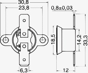 INTERRUTTORI TERMICI NORMALMENTE APERTI. Al raggiungimento della temperatura di intervento si chiude il circuito automati-camente, ripristinandosi nella successiva applicazione. CONTATTO:normalmente aperto. TENSIONE:250 V. PORTATA MAX:10 A. TEMP.NOM.:50°C÷185°C. CORPO:termoplastico. TOLLERANZA:± 3%. CON FASTON MASCHIO:6,35 mm. PER FASTON:4/11520. COPRI FASTON:4/1153. Temperatura Intervento: 60 °C.