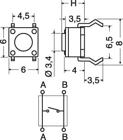 MICROPULSANTI PER APPLICAZIONI ELETTRONICHE. Adatto per telecomandi. PORTATA:50 mA - 12 VCC. RESISTENZA CONTATTI:30 mOHM max. VITA OPERATIVA:100.000 scatti. FORZA AZIONAMENTO:250 gr. Dim.H: 9,5 mm.