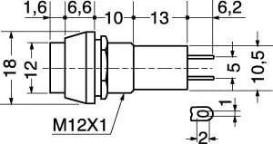PULSANTI CON AUTORITORNO. Contatto normalmente aperto. PORTATA:1 A - 250 V. TENS. PROVA:1000V per 1'. RES. ISOL.:>100 MOHM. RES. CONT.:<20 MOHM. CORPO:materiale fenolico. TERM.:a saldare in ottone. Ø FORO PANN.:12 mm. Col. Puls.: Nero.