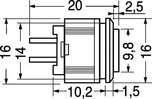 PULSANTI MINIATURA CON AUTORITORNO. PORTATA:1 A - 250 V. CORPO:materiale fenolico, TERM.:a saldare in ottone. Cont.: Aperto. Col. Puls.: Rosso.