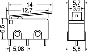 MICRODEVIATORE. PORTATA:1 A - 125 V. FORZA AZION.:40 gr. CORPO:pvc. CONTATTI:ottone argent. TERMINALI:per C.S.