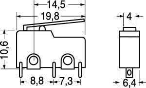 DEVIATORE MINIATURA. PORTATA:3 A - 125 V. FORZA AZION.:35 gr. CORPO:pvc. CONTATTI:ottone argent. TERMINALI:a saldare.