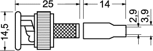 Spina BNC a crimpare • Tensione lavoro: 500V • Corpo in ottone nichelato • Temperatura lavoro: -65°C +125°C • Impedenza: 50 Ohm • Isolamento: delrin • Per cavo: RG 174 • Norme MIL: UG88/174
