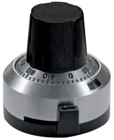 MANOPOLA ANALOGICA Ø 22MM. Risoluzione cinquantesimale. N°ROTAZ.MAX:20 giri. TEMP.LAVORO:-55°÷+71°C. CORPO:cromo satinato. IMPUGNAT.:plastica nera. PER POTENZIOM.:2/31000 – 2/31100. MODELLO:2606.