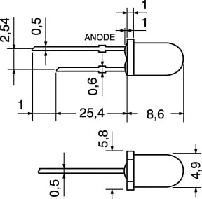 LED CILINDRICI INTERMITTENTI TRASPARENTI Ø 5 mm. MAX POT. DISSIP.:310 mW. TEMP. LAV.:-40°C÷+80°C. PER PORTALED:4/8146 - 4/8170. Colore: Rosso.
