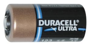 Pila al litio Duracell applicata sulle memorie dei calcolatori, macchine foto-grafiche, calcolatrici, orologi e numerosi altri utilizzi nel campo dell'elettronica. Modello: CR123