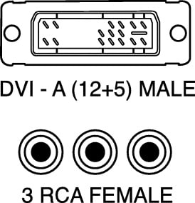 ADATTATORE PER CONNETTORI VASCHETTA SPINA DVI-A (12+5) - 3 RCA PRESE. CORPO:pvc. CONTATTI:ottone. PER CONNETT.:5/6686. SPINE RCA:4/1974.