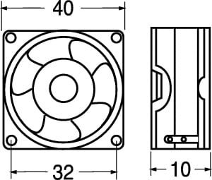 VENTILATORE ASSIALE SUPPORTO BRONZINE 40X40X10 mm. ELICA:poliestere termopl. TEMP. LAV.:-10°C÷+70°C. FATT. RUMORE:29dB. GIRI MIN./RPM:6500. CFM:7,70. GRIGLIA:45/9646. Per computer, strumenti, ali-mentatori, amplificatori, tele-visori, videogiochi, videoregi-stratori. Portata Aria: 5,93 CFM.