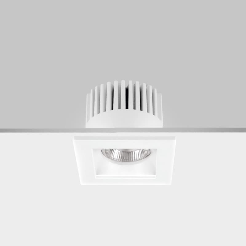 RA 8 L Q Dixit LED 3000K CRI 80 - Incasso fisso per luce d'accento, progettato per LED COB di ultima generazione, caratterizzato da ridotta profondità di incasso. Driver da ordinare separatamente, la potenza dell'apparecchio varia a seconda del driver scelto. Grado di protezione IP44. Basso livello di abbagliamento: UGR < 15. Corpo : Alluminio pressofuso. Riflettore : Termoplastico metallizzato a specchio. Schermo di Chiusura : Policarbonato trasparente. LED COB 12W 1447lm 3000K CRI80. Colore: Bianco mat.