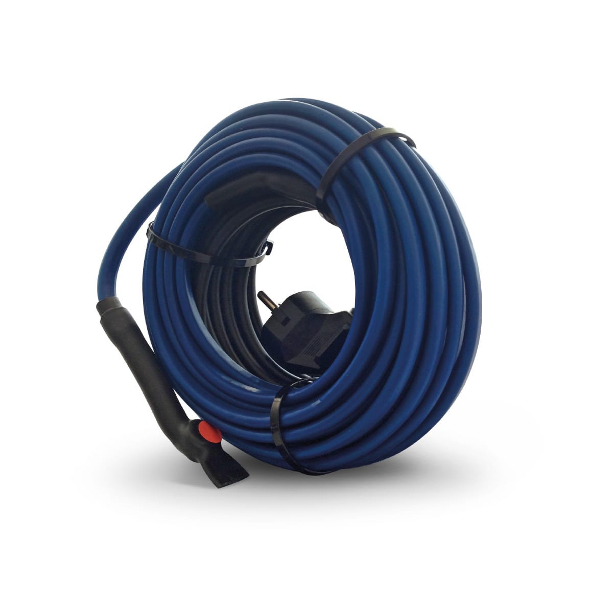 Cavo scaldante a potenza costante preassemblato per protezione antigelo di tubazioni e serbatoi. Spina di alimentazione e termostato a contatto inclusi.