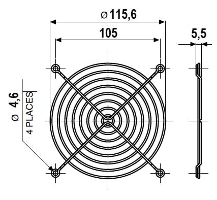 Griglia metallica per ventole, in filo d'acciaio AISI C1010 con finitura nichel-cromo