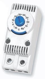 Termostato bimetallico impiegato per il controllo della temperatura nei quadri elettrici. Il contatto cambia stato all'aumentare della temperatura. Adatto per comandare apparecchi di ventilazione, riscaldamento e segnalatori di allarme. Montaggio a scatto su guida TS35, TS15, TS32. Custorida in PA66 autoestinguente secondo UL 94V-0- Colore standard grigio RAL7035. Terminali a vite.