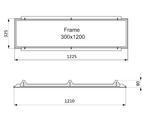 Cornice per cartongesso 1200x300x165mm, comprese staffe laterali, viti e rondelle