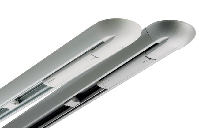 Kit Binario di Inizio. Ideale per percorsi montati su superficie. Lunghezza singola o di avvio percorso. Fornito con Unità Binario. Alimentazione a Pressione Sotto Tensione, Tappi Estremità, Viti di Montaggio e Coperture Attacchi a Vite