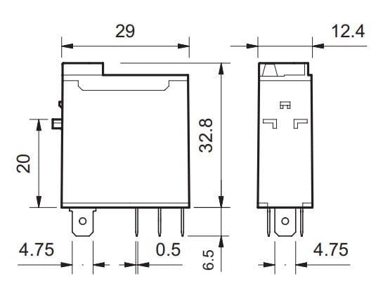 Mini relè. (A): 16 N°contatti: 1 CO Materiale contatti: AgNi Collegamento elettrico: raccordo a innesto Faston 187. Alimentazione: DC Volt DC: 24 V. non polarizzato monostabile Categoria di protezione: RT II. Optional: Pulsante di prova+indicatore meccanico. Accessori: Adattatore per fissaggio;zoccolo S.97.