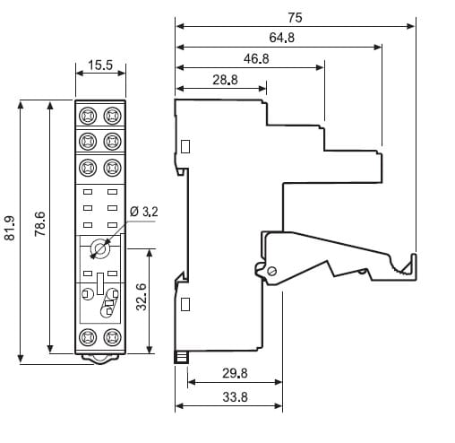 Zoccolo con morsetti a bussola Montaggio: barra cieca 35 mm (A): 10 Colore: Nero Grado di protezione: IP 20 Accessori: Moduli di segnalazione e protezione EMC;pettine 8 poli;ponticello plastico