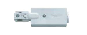 Permette l’alimentazione del binario. Ad innesto rapido con dentino di guida e accessorio per la selezione della posizione fase-neutro. Consente l’ingresso del cavo elettrico sia in testata che nella parte superiore. Utilizzato insieme ai cubi rende possibile la giunzione lineare, l’angolo, la “T” e la croce.