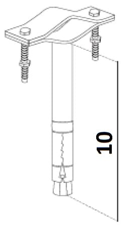 Zanca ad espansione con tubetto Ø18x1,5 mm per pali Ø 25÷45 mm. Zincatura elettrolitica. Con dadi