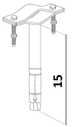 Zanca ad espansione con tubetto Ø18x1,5 mm per pali Ø 25÷45 mm. Zincatura elettrolitica. Con dadi