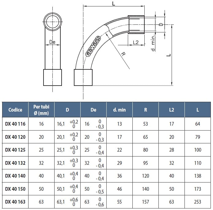 GEWISS - GEWDX40125 RKS/25G CURVA RAG.STRETTO
