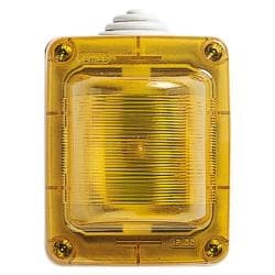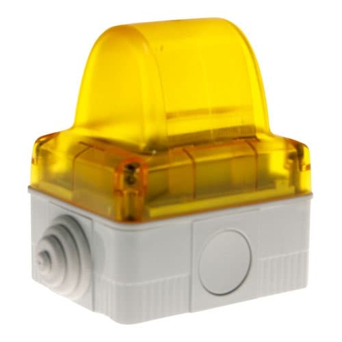 Lampeggiatore elettronico, fornito privo di lampada. Custodia grigio RAL 7035. Dotato di passacavo per tubi di diametro esterno max 20 mm.