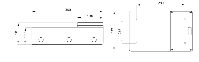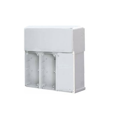 Base modulare in plastica per montaggio in batteria di prese fisse verticali - IP55. N°3 prese IB alloggiabili 16/32 A. N°2 entrate laterali diametro 23 mm. N°5 entrate superiori diametro 23 mm.
