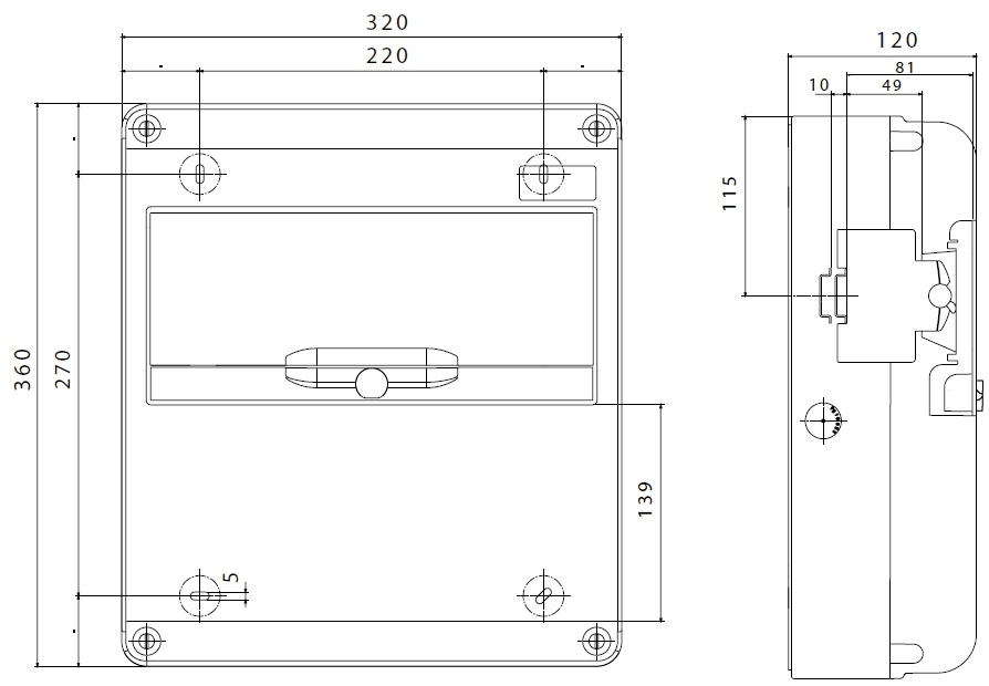 Quadro stagno Q-DIN 14 moduli vuoto in plastica grigio RAL 7035 IP65. • Numero di IEC 309/IB alloggiabili: Coperchio cieco