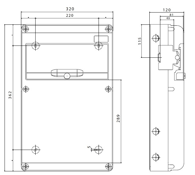 Quadro stagno Q-DIN 14 moduli vuoto in plastica grigio RAL 7035 IP65. • Numero di IEC 309/IB alloggiabili: 4 IB Orizzontali 16/32 A SBF IP 44 • Numero di coperchi ciechi in dotazione: 2 IB 16/32A