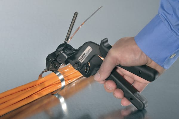 Utensile in metallo resistente. La forza di tensionamento è controllata dall'operatore. La coda della fascetta viene tagliata azionando l'apposita leva. L'utensile manuale KST-STG200 è stato progettato per installare le fascette in acciaio inox in un ampio range di settori quali le costruzioni navali, piattaforme petrolifere, impianti petrolchimici e il trasporto di massa. L'utensile è semplice da maneggiare e con una tensionatura più affidabile di una semplice tensionatura manuale.
