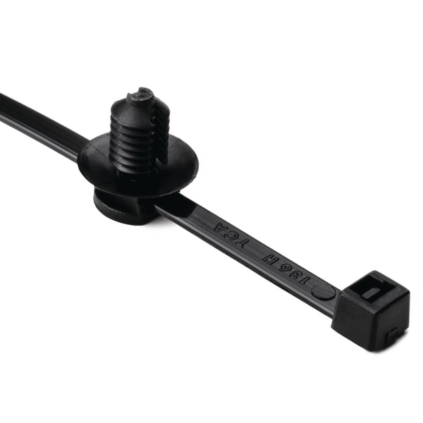 Fascetta 2-piece preassemblata con ancoraggio a pino. Facile da installare, anche senza attrezzo. La testa della fascetta può essere riposizionata dopo la legatura. Il disco è in grado di controbilanciare le pressioni sulla fascetta e minimizza l‘ingresso di polvere, sporco e acqua. L'ancoraggio a pino può essere utilizzato con pannelli di diversi spessori. Adatto ai fori filettati. Disegnate inizialmente per il fissaggio di cavi nei cablaggi del settore automotive, la semplicità e la facilità di utilizzo, hanno reso queste fascette utilizzabili ovunque: dagli aerei, alle lavatrici e agli elettrodomestici in genere.