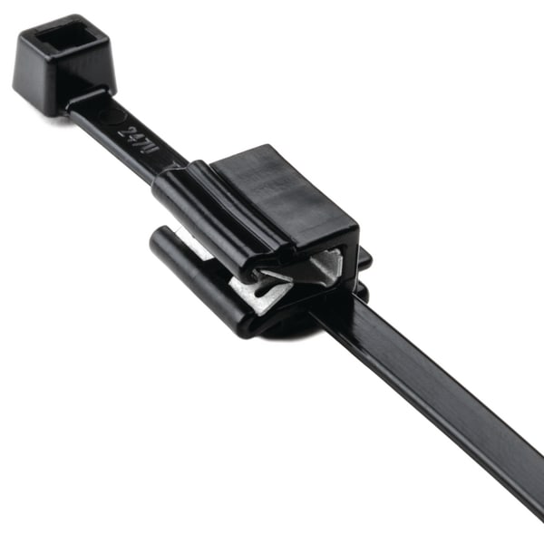 Fascetta 2-piece preassemblata con EdgeClip. La testa della fascetta può essere riposizionata dopo la legatura. EC9, EC10, EC21 ed EC22 sono per diametri di legatura minimi di 1 mm. Per bordi lamiera da 1 a 3 mm di spessore. Queste fascette di cablaggio con ancoraggi per bordo lamiera sono ideali per installazioni in cui non sono consentiti fori o quando la temperatura ostacola l'applicazione di adesivi. Utilizzate dai quadristi e nell'industria dell'automobile, garantiscono un ottimo risparmio di tempo e denaro.
