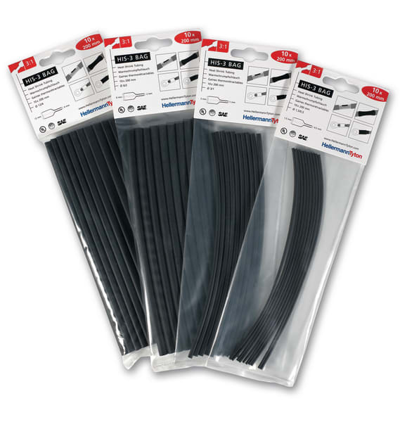 Guaina a parete sottile e flessibile in poliolefina reticolata. Elevato rapporto di restringimento (3:1). Pratici sacchetti di dimensioni ridotte con 10 spezzoni pretagliati di lunghezza 200 mm. Si adatta a cavi con diametro variabile. Le guaine HIS-3 insacchetto sono utilizzabili per l'isolamento e la protezione di cavi e cablaggi.