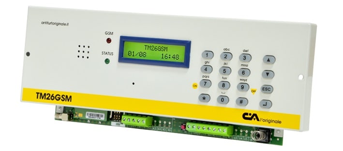 PANNELLO COMBINATORE TELEFONICO GSM 2IN/2OUT SERIE TM. •Microfono incorporato •Modulo GSM •Ascolto ambientale da remoto •Ritardo programmabile singolarmente sugli ingressi •Possibilità di abbinare ad ogni numero telefonico uno, alcuni o tutti i canali del combinatore •Tamper di protezione antiapertura •Indicazione dell'intensità di segnale GSM e del gestore telefonico •Numero di ripetizioni messaggio e cicli di chiamata programmabili •Mascheramento ID chiamante •Attivazione di una uscita con un solo squillo (chiamata senza risposta) da uno dei numeri presenti nella rubrica SMS, con il re-invio di uno squillo di conferma (funzione CLIP) •Conforme alla norma CEI EN 50131-1